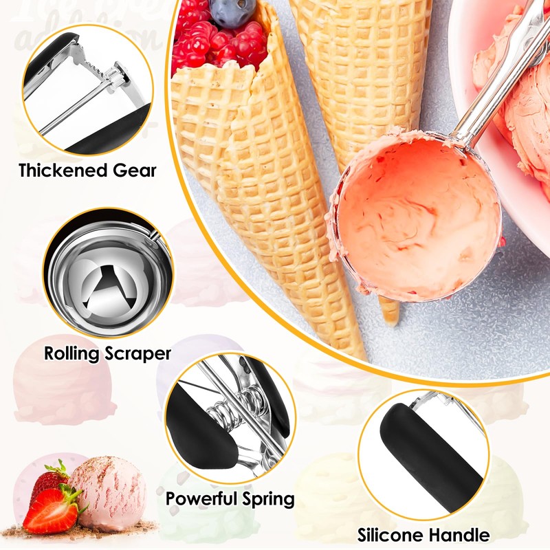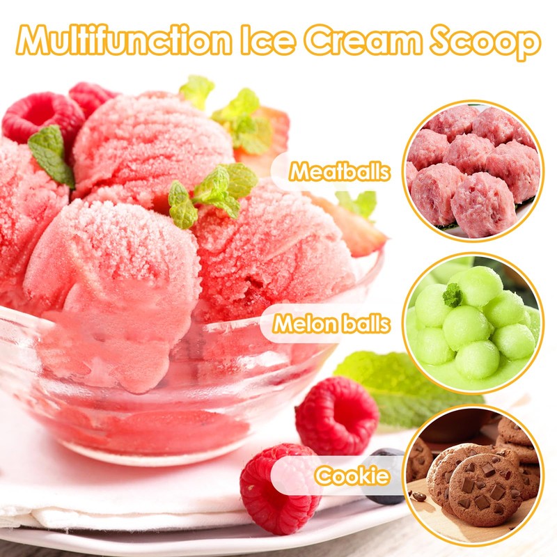 - Ice cream scoop for widely used: the multifunctional ice cream scoop can be used as a cookie scoop, melon scoop, sorbet scoop and cupcake scoop, and is perfect for use at home, restaurant or ice cream parlour. With this 5cm ice cream scoop, you can make delicious waffles, fruit plates, delicious cupcakes and cookies yourself.