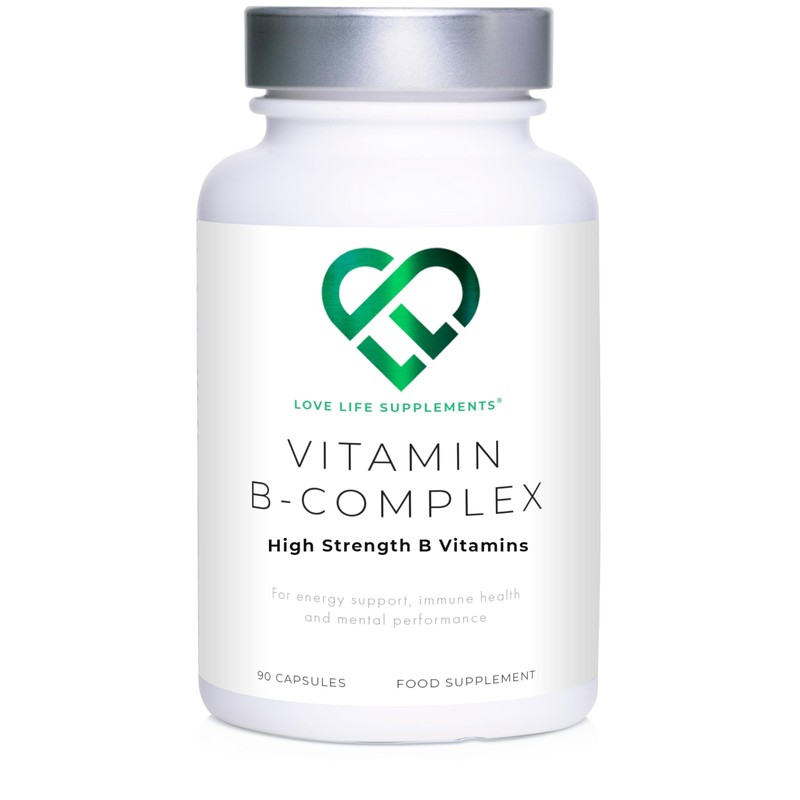 LOVE LIFE SUPPLEMENTS Vitamin B Complex High Strength | 90 Capsules - 90 Day Supply | All 9 B Vitamins B1-B2-B3-B5-B6-B7-B9-B10-B12, Inositol and Choline | Completely Clean - No Fillers | Love Life Supplements