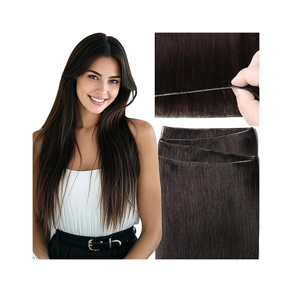 Loxxy Genius Weft Hair Extensions Real Human Hair 18 Inch Hand Tied Weft Hair Extensions Human Hair 50gram Natural Remy Darkest Brown Sew in Human Hair Straight for Thin Hair