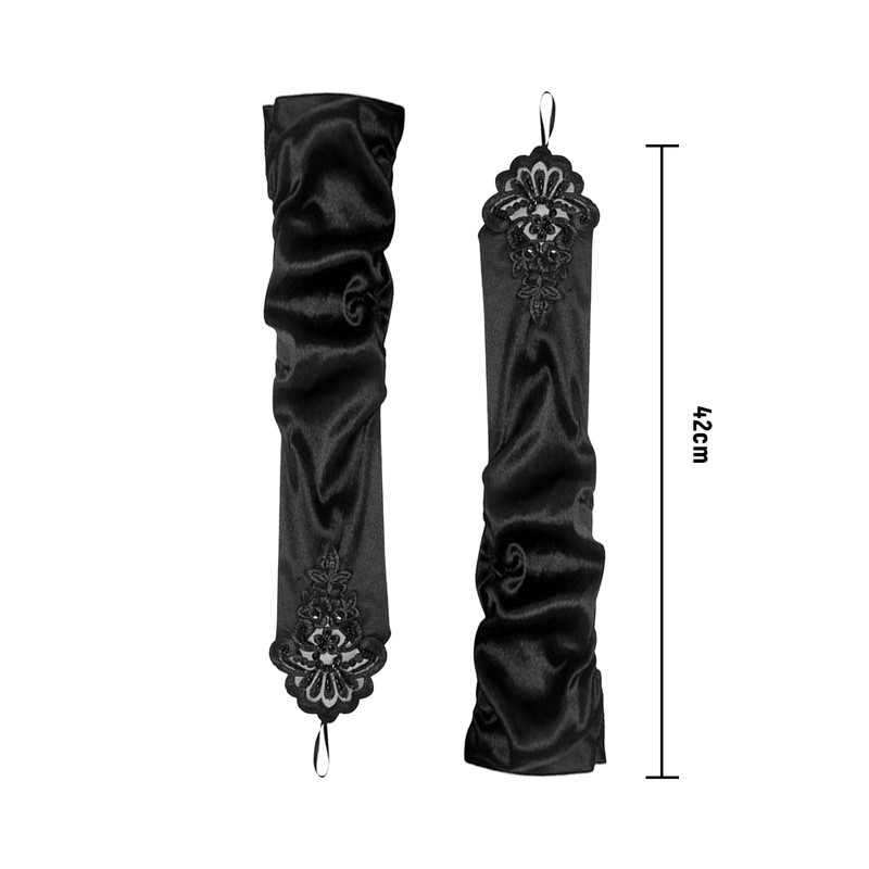 Our long gloves women's fingerless retro lace satin gloves are the perfect accessory for all formal occasions.