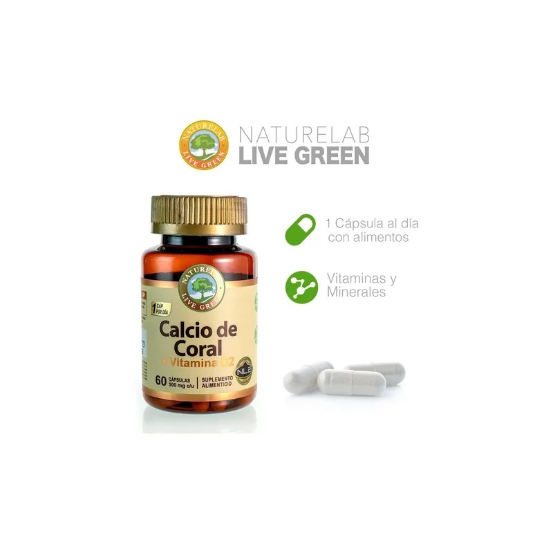 Calcio de Coral + Vitamina D2 Naturelab® | Excelente fuente de Vitamina D2 y Lecitina de Soya | Suplemento | Sin Gluten | Sin GMO´s | Sin Lácteos | Sin Conservadores | Contiene: 60 Cápsulas