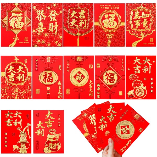 - Package contents: you will receive 36 pieces Chinese red envelopes in 12 different styles, 3 pieces for each style. Sufficient quantity and different types can meet your requirements in the New Year.