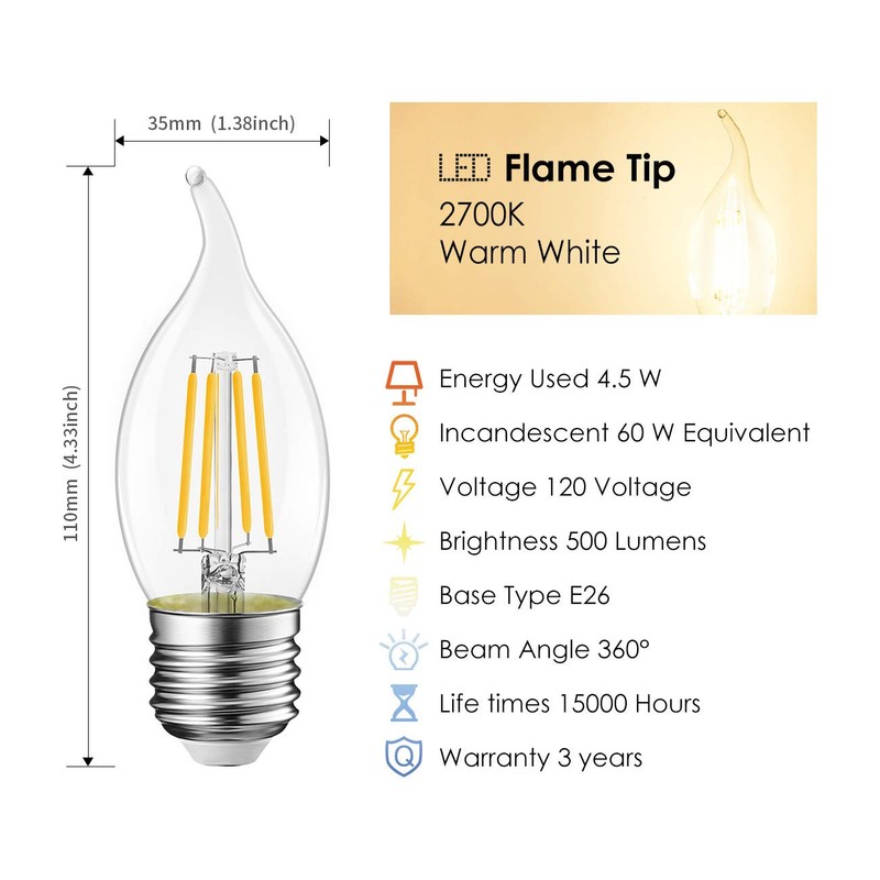 - Easy Intallation: Standard E26 Candelabra base fits universal existing American E26 base well, you can replace the old bulbs in a few seconds.