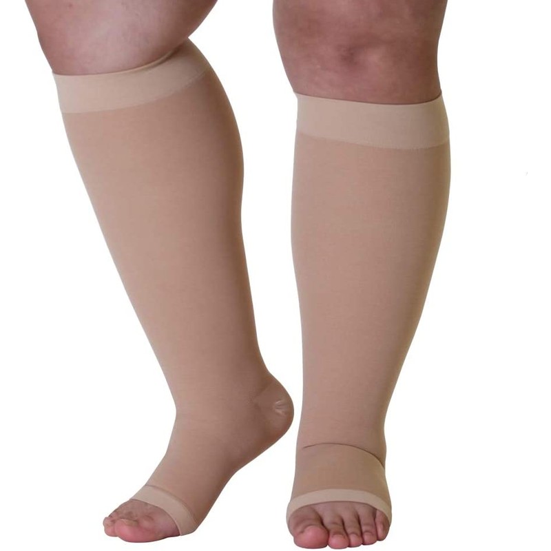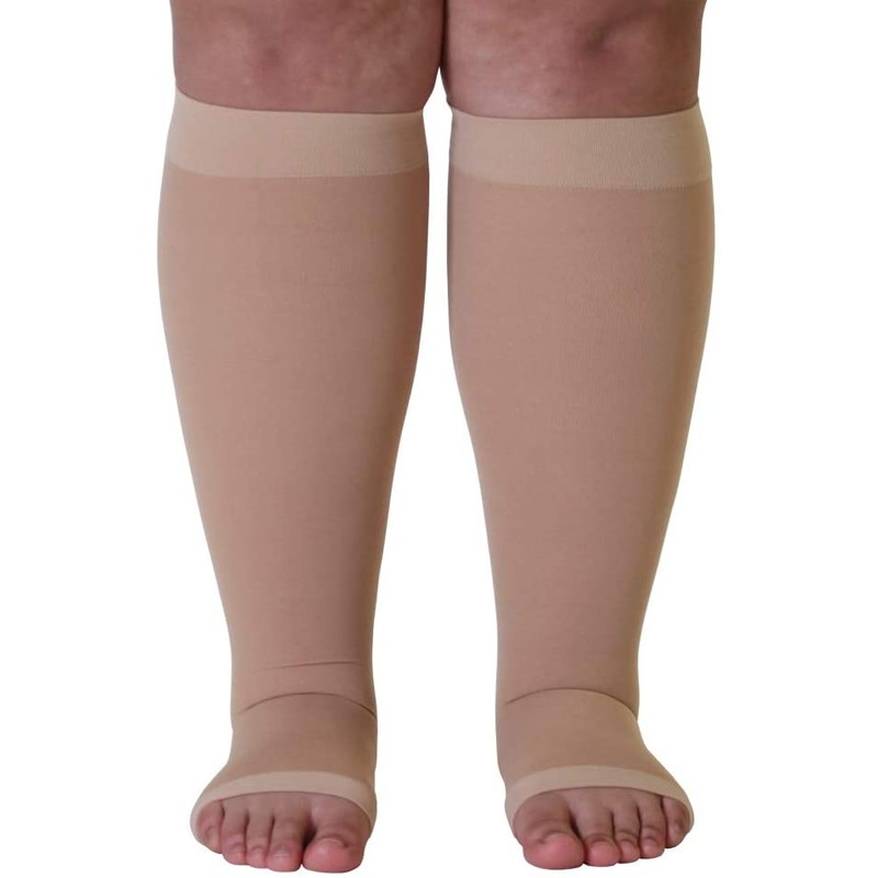 Made in The USA - XXX-Large Mojo Compression Socks | Knee Length & Wide Calf | Open Toe | Beige 3XLarge by Mojo Compression Socks Store