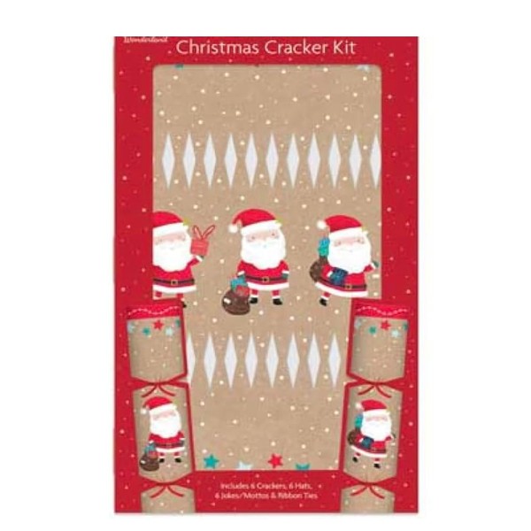 Make and Fill Your Own Christmas Cracker Kit - Includes 6 Cracker Kit - Fill With Hats, Jokes/Mottos, Ribbon Ties & Snaps- 3 Designs (Santa)