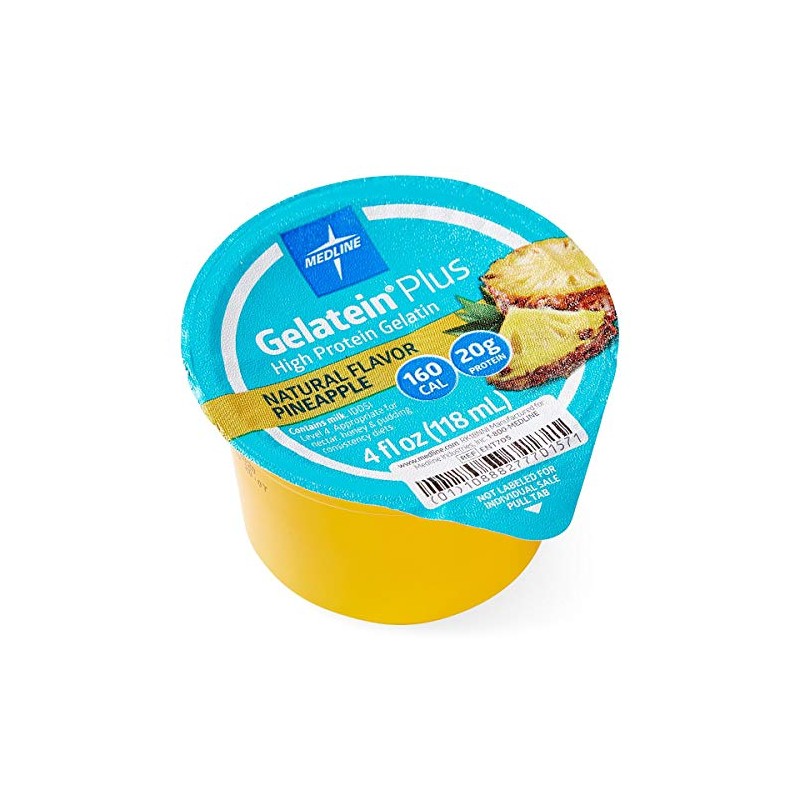 Medline Active Gelatein Plus Supplement, Easy to Serve, Protein and Calorie Enhanced, Pineapple Flavor, 4oz. Cup (Case of 36)