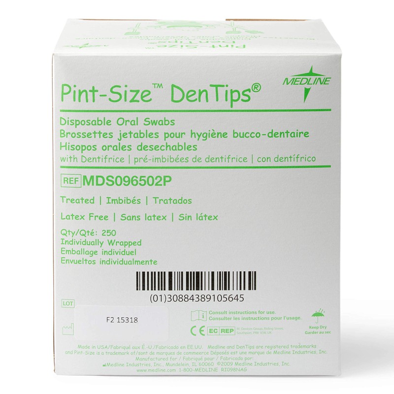 Medline Dentips Disposable Oral Swabsticks, Adult Mint Treated, Green, 500 Count
