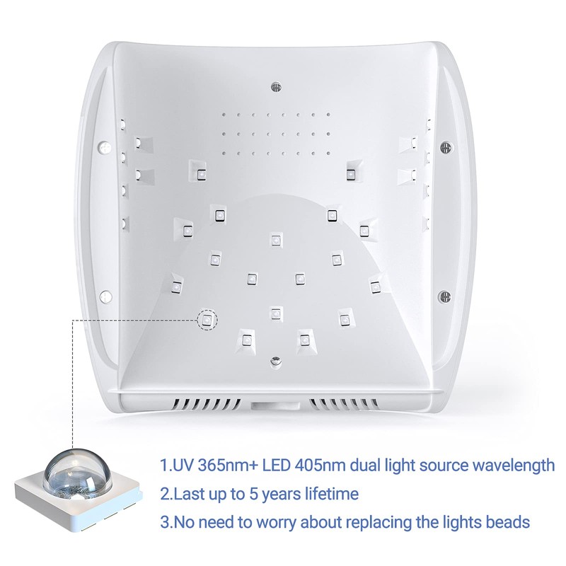 - 【Advanced Technology, Amazing Curing】30 pcs dual LED UV beads with 54 watts high power, low heat, comfortable, dry your gels fast and efficiently. No harm to your eyes and hands.