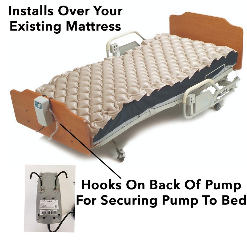 - Very comfortable pressure sore relief. The compact alternating pressure pump is the secret for making this medical bed mattress comfortable. Durable, heavy gauge, premium vinyl with 130 individual bubble cells, from a leader in hospital bed mattresses