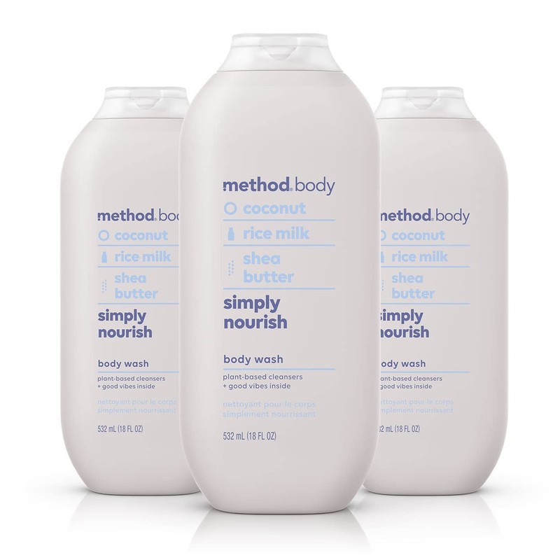 Method Body Wash, Simply Nourish, Paraben and Phthalate Free, Biodegradable Formula, 18 oz (Pack of 3)