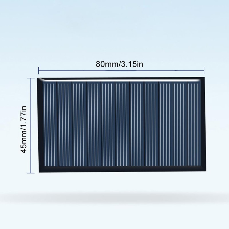 - Product parameters: you will receive 5 pieces polycrystalline mini solar panels. Each solar panel measures 80 x 45 mm. Voltage 5 V, current 100 ma, power 0.5 W.