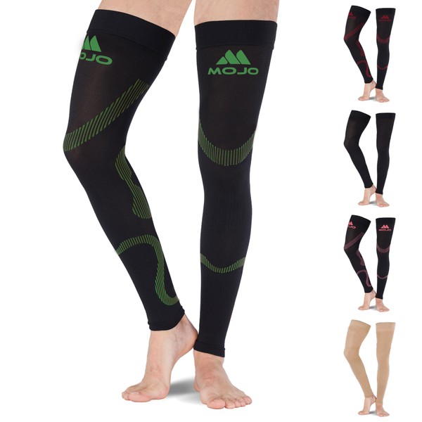 Mojo Compression Socks 20-30mmHg Thigh High Leg Sleeve Support for Varicose Veins, Lymphedema, and DVT - Black/Green, Medium A609BG2 - Ideal for Recovery of Calf and Quads - 1 Pair