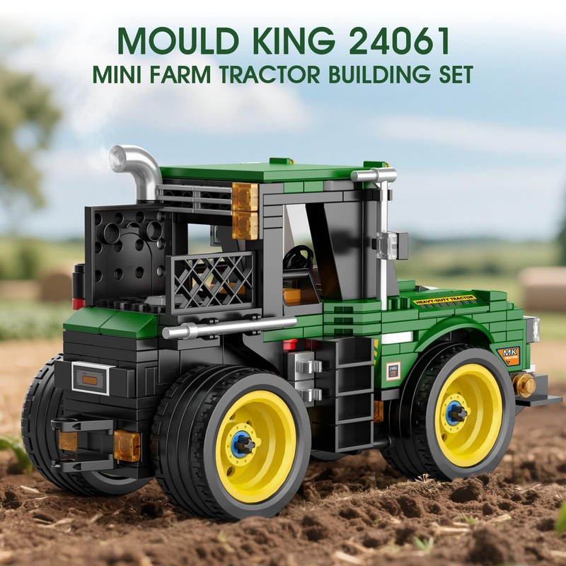 - 🌱Realistic City Farm Tractor – Part of the Mould King building sets, this tractor toy features a classic green-and-black color scheme, replicating real farm machinery! It pairs perfectly with farm sets for immersive agricultural play!