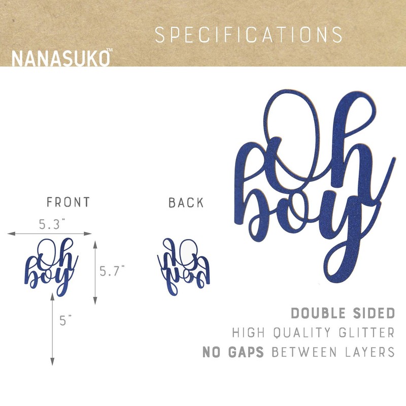 NANASUKO Baby Shower Cake Topper - Oh boy - Double Sided Navy Blue Glitter - Premium Quality Made in USA