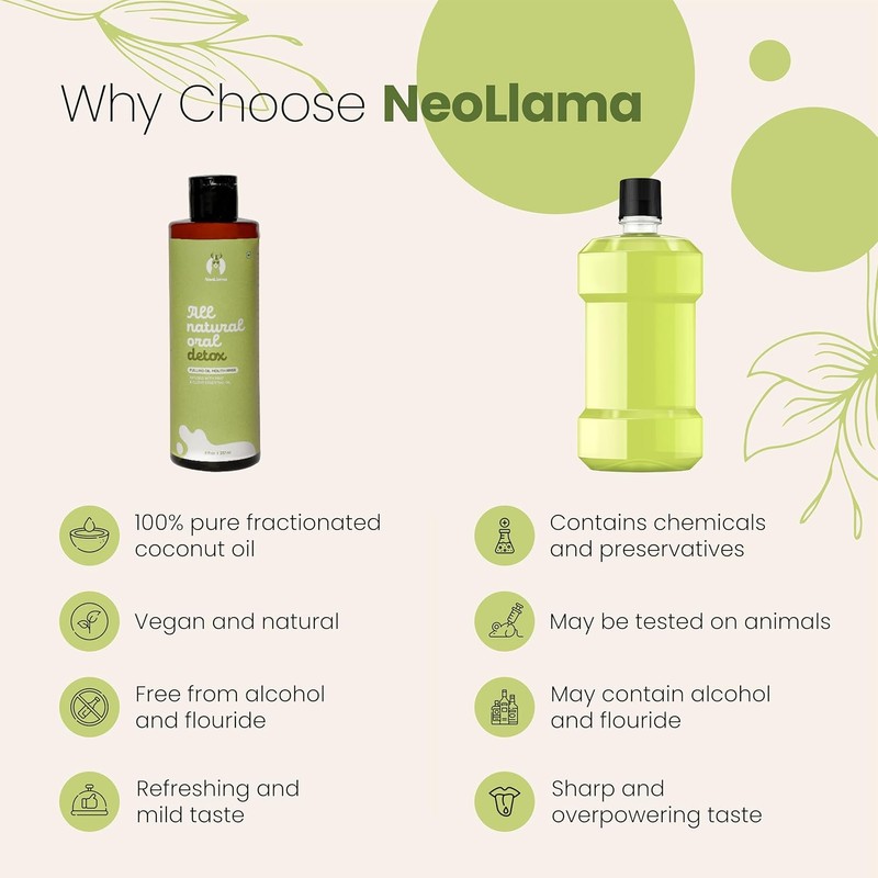 NeoLlama All Natural Oil Pulling Mouthwash – Natural Oral Rinse with Fractionated Coconut, Sesame, Clove & Peppermint Oils – Freshens Breath & Supports Daily Oral Care – 8 fl oz