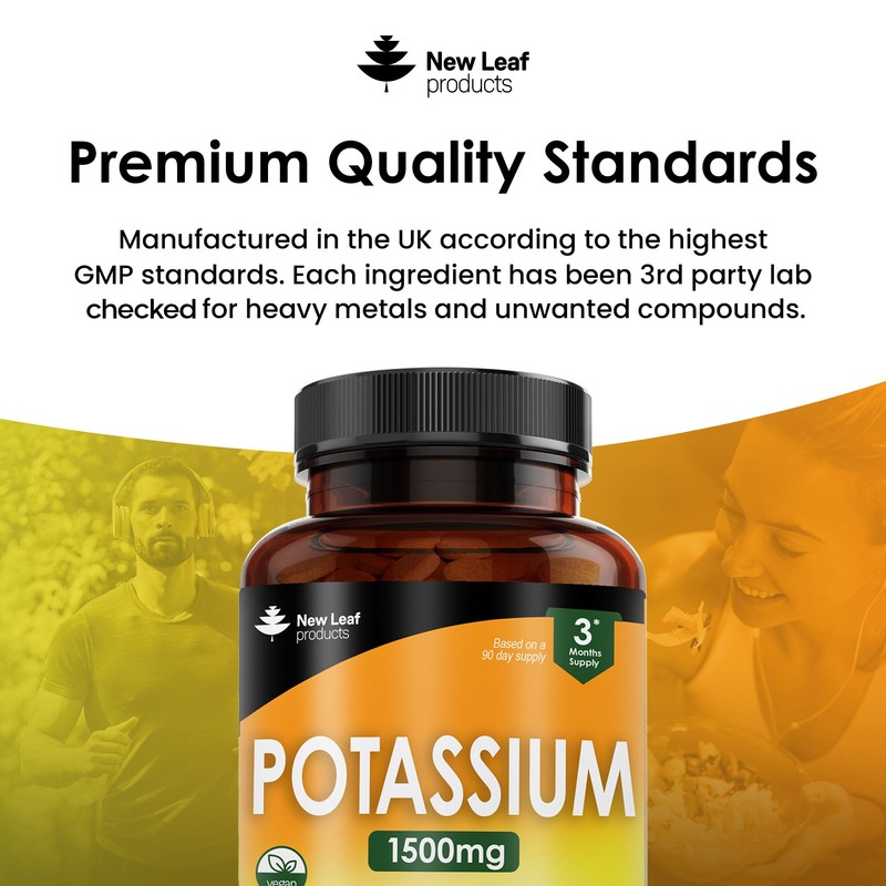 NEW LEAF PRODUCTS Potassium Supplements High Strength - 180 Vegan Potassium Tablets Mineral Electrolytes Supplement Contributes to Normal Muscle Function, Nervous System - Gluten-Free, Non-GMO, Made in UK by New Leaf
