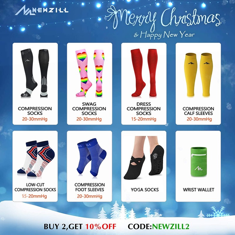 - NEWZILL TECHNOLOGY – These performance socks provide superior relief of plantar fasciitis, heel spurs, ankle/arch support, and foot pain. They reduce blood pooling and banish discomfort, as well as help with Achilles tendonitis, and heel pain relief. Our pressure socks are designed with a specific weaving texture that reduces the impact on the footbed. Like all the best compression socks, these can be worn after strenuous activity to help your feet recover and to reduce swelling and soreness.