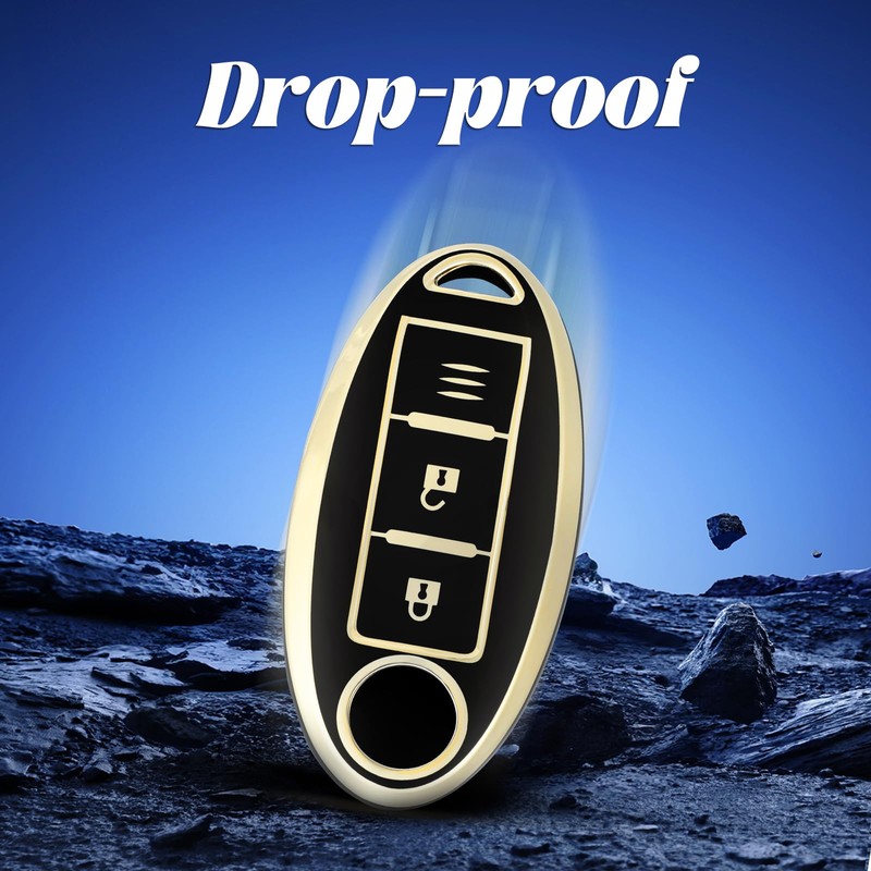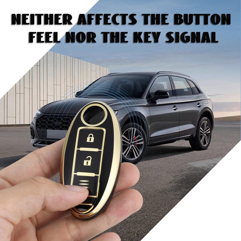 OFF WE GO Car Key Case Key Cover for Nissan X-Trail Qashqai Murano Micra Leaf Kicks Tiida Pathfinder Note Juke Cube Key Cover with Key Fob Protection Housing Black Gold