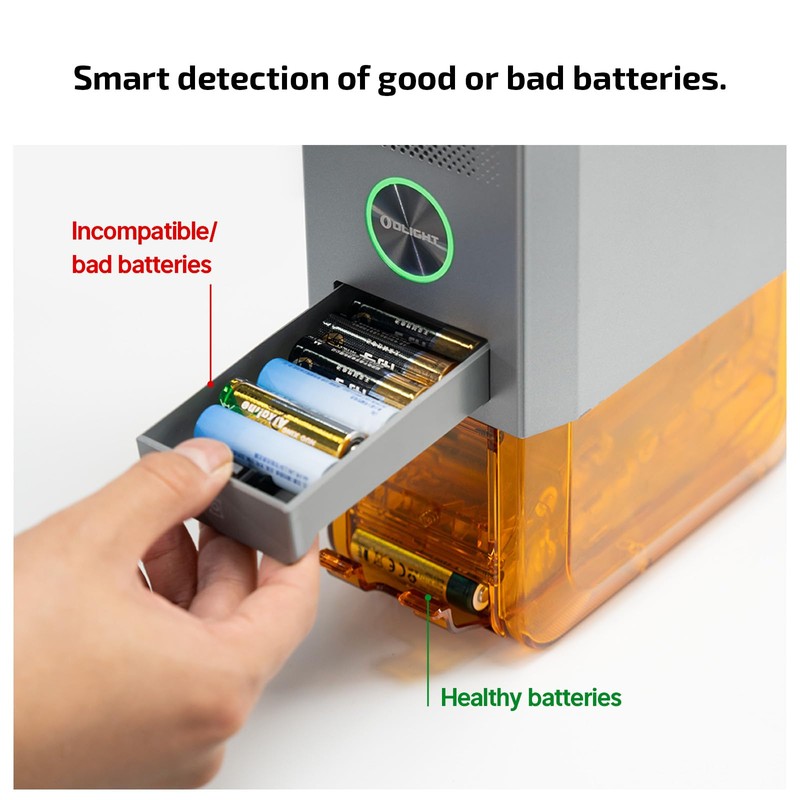 The OLIGHT Ostation X is the world's first 3-in-1 automatic battery charger, designed to simplify and revolutionize the way you manage batteries. This all-in-one solution combines a charger, tester, and organizer into one smart, sustainable device. A good choice for a smart battery charger for home use. Just toss in your batteries, and let OLIGHT Ostation X do the rest. Its unique waterfall charging technology ensures seamless operation—simply drop, charge, and go. The intelligent detection and sorting system automatically identifies compatible and healthy batteries, regardless of (+)/(-) polarity, while rejecting incompatible or faulty ones. Plus, its spacious storage compartment can neatly organize and store 32 fully charged AA batteries, making them as easy to grab and replace as single-use options. With the OLIGHT Ostation X, you get ultimate convenience, smarter battery management, and a cleaner, more sustainable way to power your life. The OLIGHT Ostation X Smart Home, with its WiFi app control functionality, provides advanced features for optimal control and convenience.