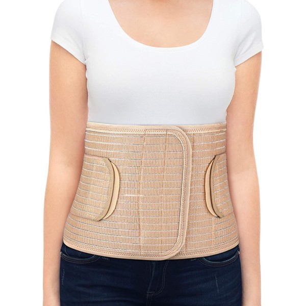 ORTONYX Breathable 9.5" Abdominal Binder/Postpartum Postoperative Wrap/Abdomen Hernia Support Belt for Men and Women - XXL (42"-48") Beige