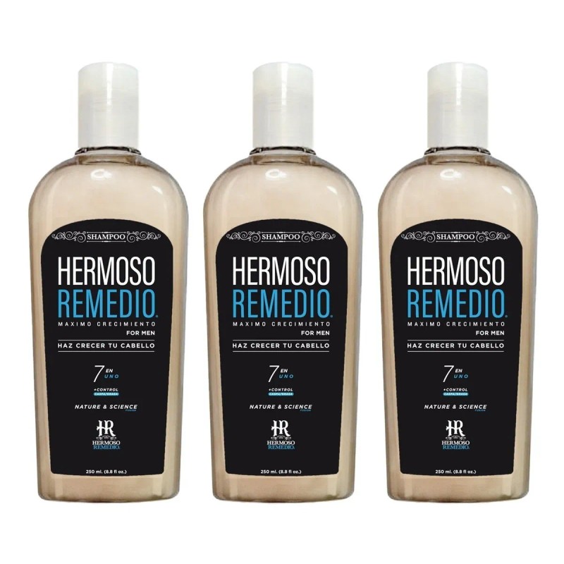 Pack Shampoo Anticaida Crecimiento Acelerado Anticaspa Reparador Hidratante Para Hombre Hermoso Remedio ® 250 ml x 3 unidades
