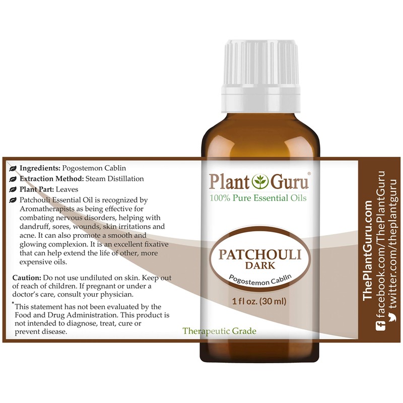 **Common Uses:** Patchouli is recognized by aromatherapists as being effective for combating nervous disorders, helping with dandruff, sores, skin irritations and acne. The specific properties include use as an antidepressant, anti-inflammatory, anti-emetic, antimicrobal, antiphlogistic, antiseptic, antitoxic, antiviral, aphrodisiac, astringent, bactericidal, carminative, deodorant, digestive, diuretic, febrifuge, fungicidal, nerving, prophylactic, stimulating and tonic agent. In the perfumery industry, it is interesting to note that Patchouli improves with age, and that the aged product is what is preferred over freshly harvested. In aromatherapy, Patchouli is an excellent fixative that can help extend other, more expensive oils.