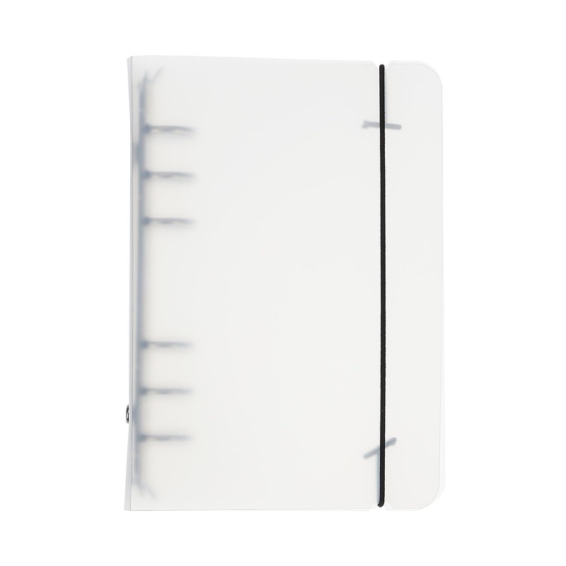 PATIKIL An A6 binder cover, 1 piece PP 6 ring round ring binder cover with black fixing strap, metal closure, loose leaf binder protector, refillable notebook for meeting, matte white