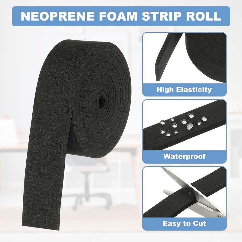 - Advantage: Made of good Neoprene material, this foam strip roll is waterproof, oil-resistant, shock-proof, and buffering, its high density provides excellent sealing and can heat-insulation, windproof, dust-proof, and sound-proof. Enough elasticity and anti-torn for not easy breaking and durability.