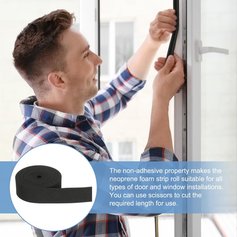 - Instruction: The non-adhesive property makes the neoprene foam strip roll suitable for all types of door and window installations. You can use scissors to cut the required length for use.