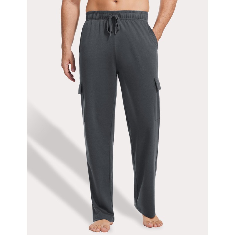 PINSPARK Cargo Sweats for Men with Pockets Baggy Cotton Sweatpants for Men Open Bottom Joggers Sweatpants Lightweight Dark Grey