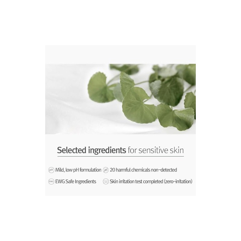 - Recomendado para tipos de piel irritada y sensible: a través del extracto de centella asiática (también llamado Cica o Madecassoside), árbol de té y extracto de flor Lonicera Japonica, conocido como ingrediente calmante representativo, que rápidamente