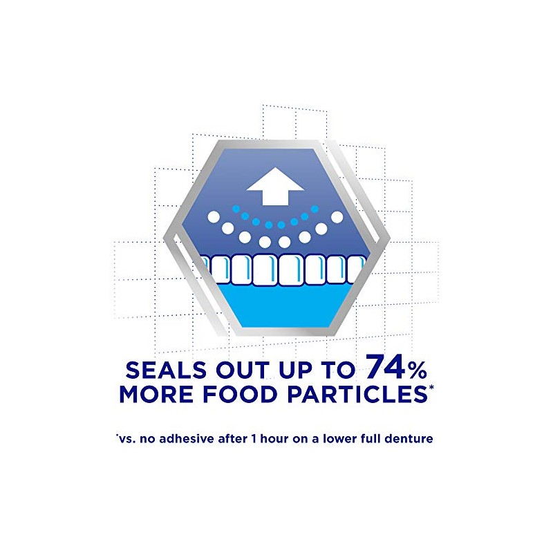 - Forming a seal between the gum and the denture surface, all Poligrip denture adhesives help block out food particles from getting trapped between the gums and the denture.
