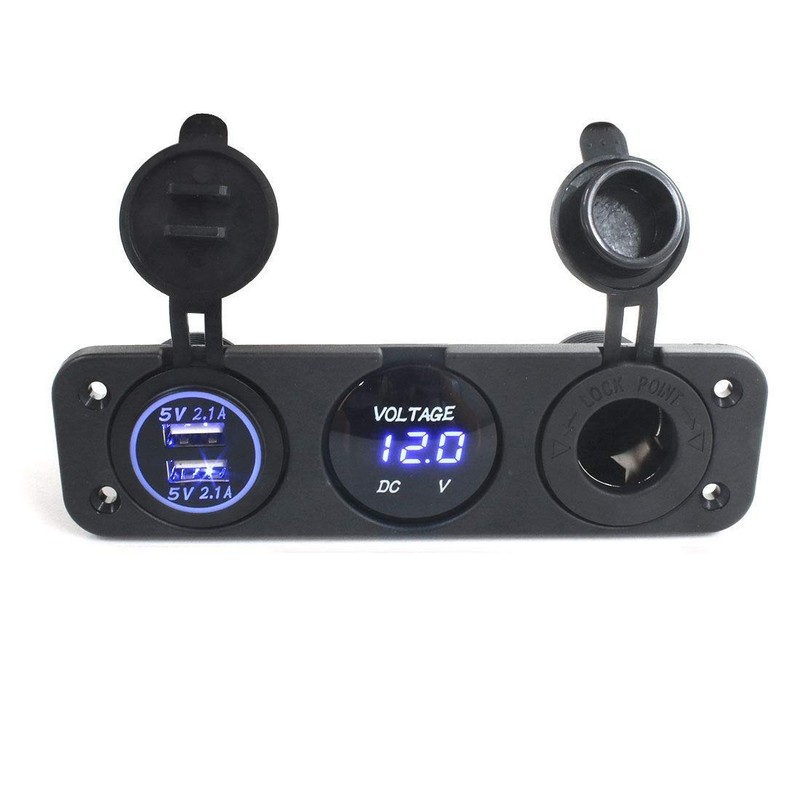 - Dual USB Charging Ports and Voltmeter / 12V Cig Output Socket