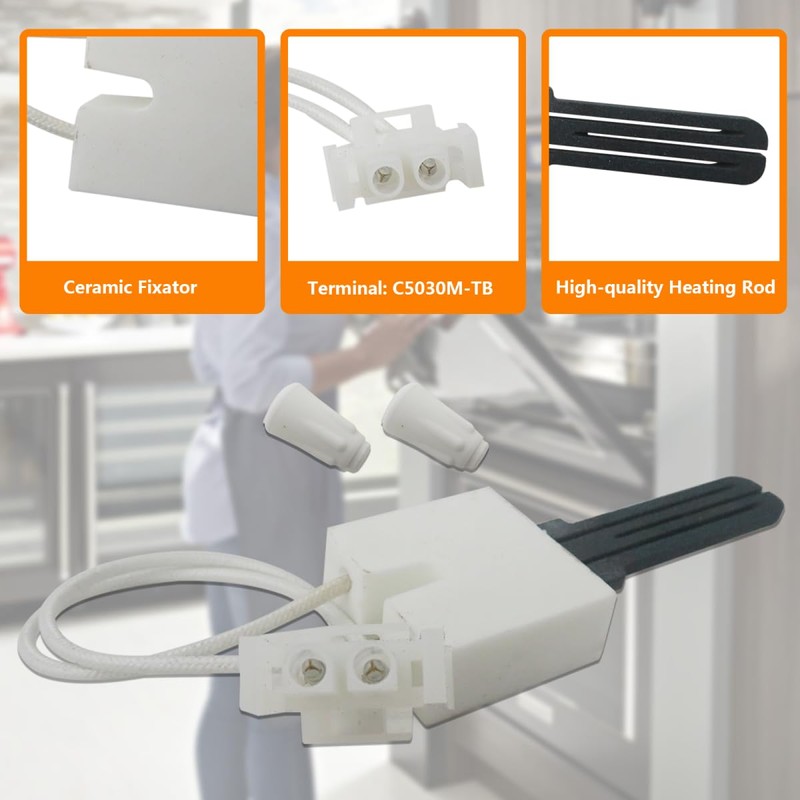 - Features: perfect for your stove or oven. Helping you light oven burner and adjust temperature normally and extend the life of your stove or oven, saving you the time, effort and service fees of hiring a repairman. Flame sensor Ceramic section is very easy to damage, just in case it a brittle filament could be cracked or damaged; PACKAGE INCLUDES: 1x Furnace Ignitor Hot Surface as pictured