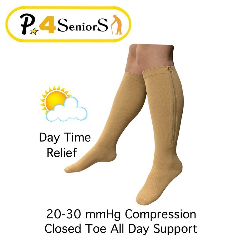 Presadee Seniors 15-20 mmHg And 20-30 mmHg Zipper Compression Easy Zip Up Socks Swelling Calf Leg Day And Night 2 Pack Help Increase Circulations During Movement And When Your Legs Are Resting. The Easy To Use Zipper Helps Assist When Putting It On Or Taking It Off. Provides 24 Hours Relief For Your Calf And Leg To Help Reduce Swelling. The Compression Of Both Pairs Provides Extra Strength For Your Legs Throughout The Day And Night. Get The Best Of Both Compression Grade With Lighter 15-20 mmHg At Night And Stronger 20-30 mmHg During The Day. Includes 2 Pairs: Closed Toe And Open Toe That Can Be Worn Day Time Or Night Time. Circumference Size Chart: S/M - (Calf 10-14)(Ankle 6-9) L/XL - (Calf 13-18)(Ankle 8-11) XXL - (Calf 17-22)(Ankle 10-13) MEN US Shoe Size S/M - Size 6-8 L/XL - Size 8-11 2XL - Size 10-14 WOMEN US Shoe Size S/M - Size 6-9 L/XL - Size 8-11 2XL - Size 10-15