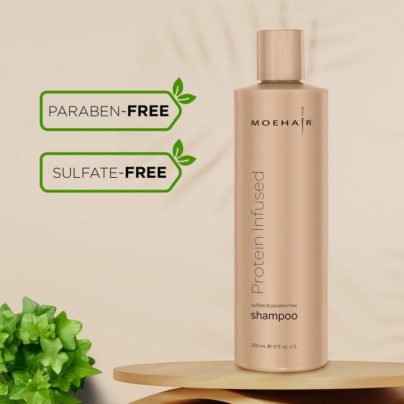 - Protein Infused: Moehair Protein Infused Shampoo contains natural proteins that hydrates and helps restore moisture in hair.