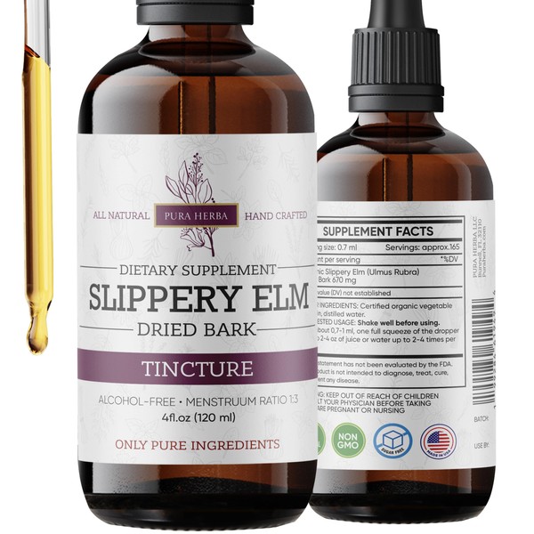 Pura Herba Slippery Elm Liquid Tincture – Alcohol-Free, Vegan – Organic Slippery Elm Bark Extract – Made in USA – 4 Fl Oz