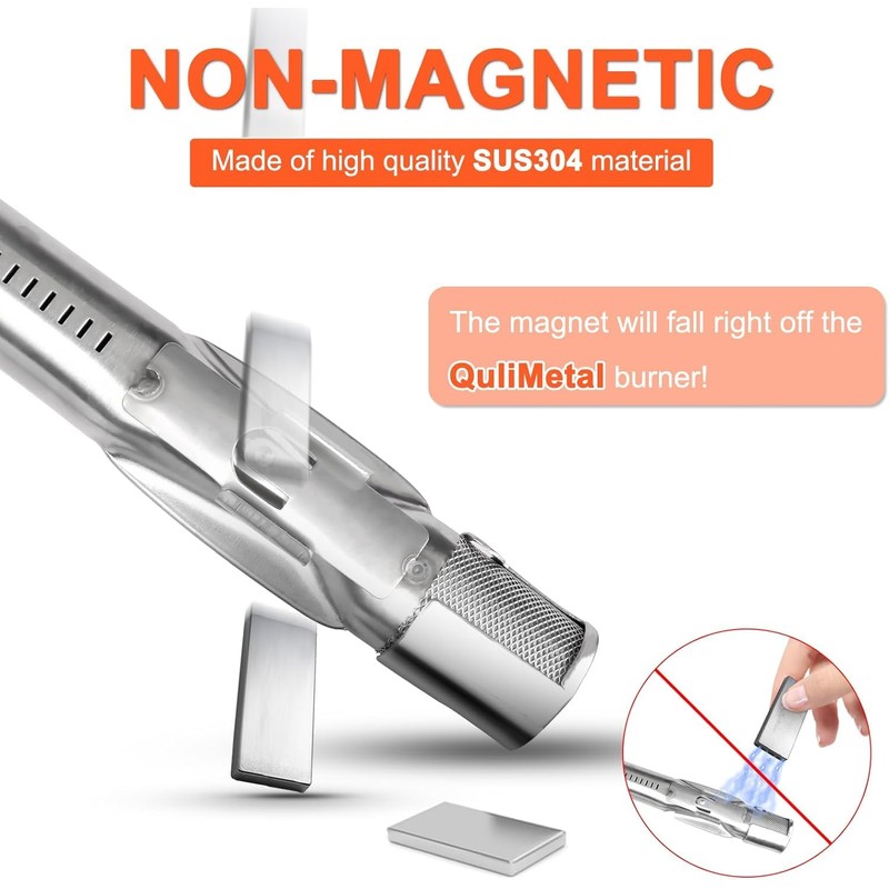 - 【BUILT TO LAST】Made of premium 304 stainless steel to ensure long-lasting use, non- Magnetic. Strong corrosion & heat resistant and heat preservation give us a great and safety barbecue experience. Do not chips, warp or rust out like other material. Compare with the original parts, the material of our grill tube burner are more heavy duty, last longer