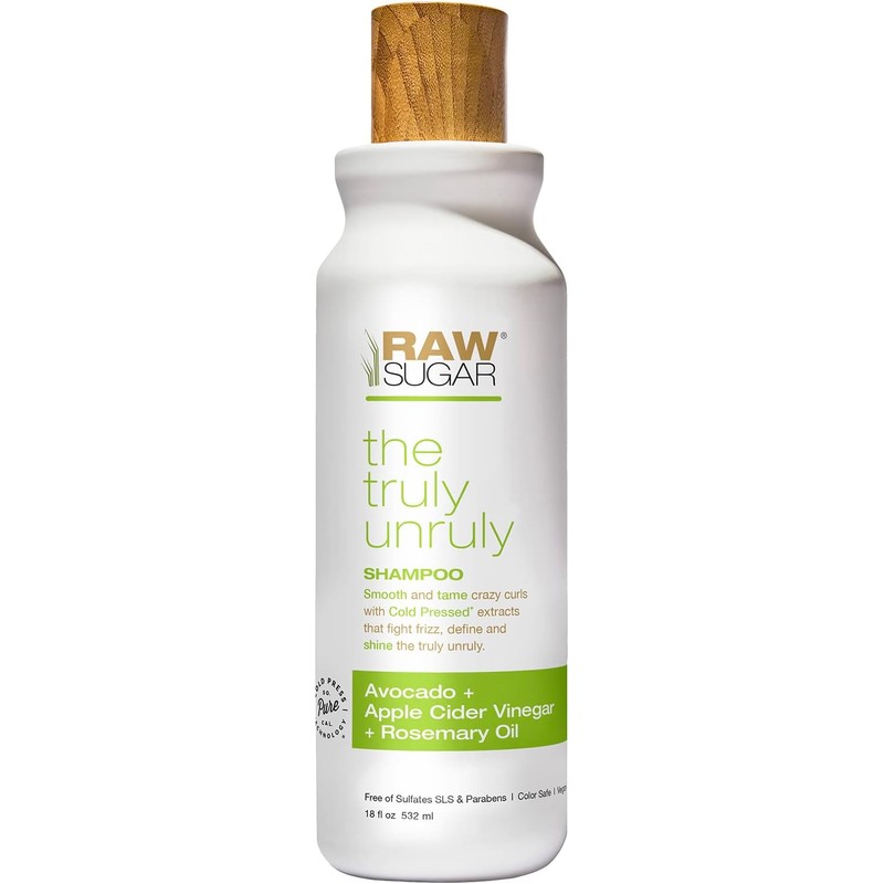 RAW SUGAR, Truly Unruly, Shampoo Hidratante para Rizos, Reduce el Frizz, con Aguacate, Vinagre de Manzana y Aceite de Romero, Prensado en Frío, Vegano, Libre de Sulfatos, Siliconas y Parabenos, 532 ml