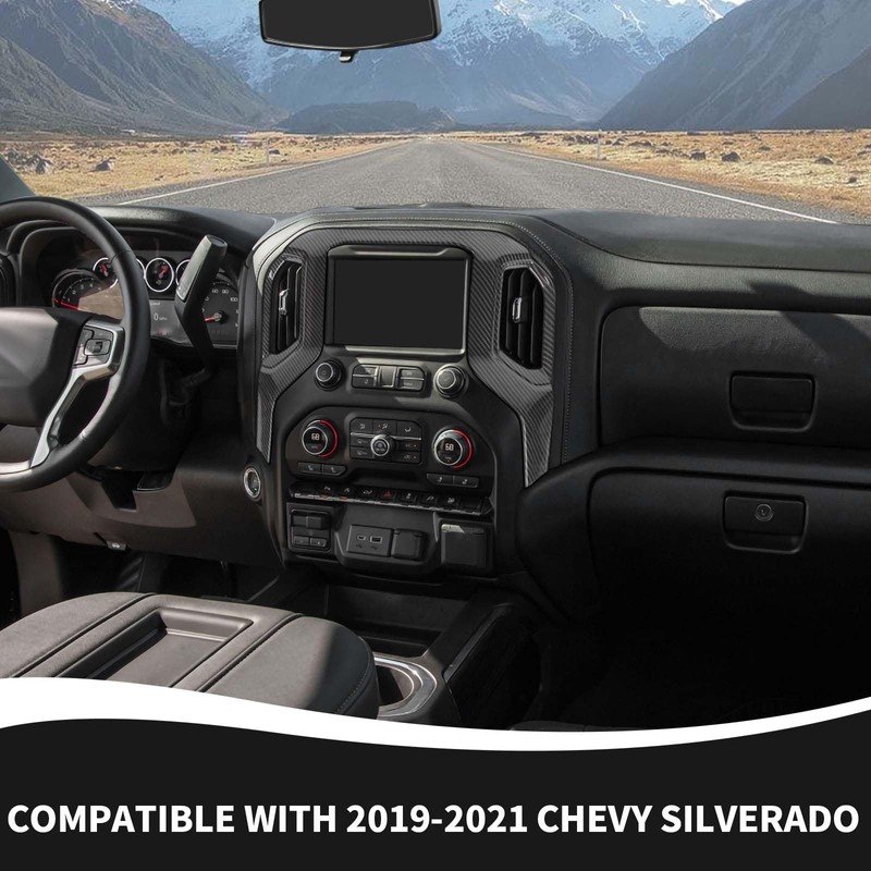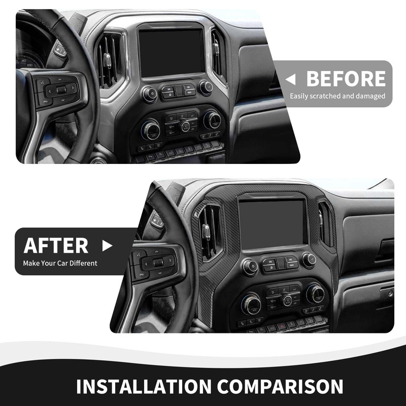 - FITMENT--Carbon fiber navigation panel frame cover Compatible with 2019-2021 Chevy Silverado & 2019-2022 GMC-SIERRA.