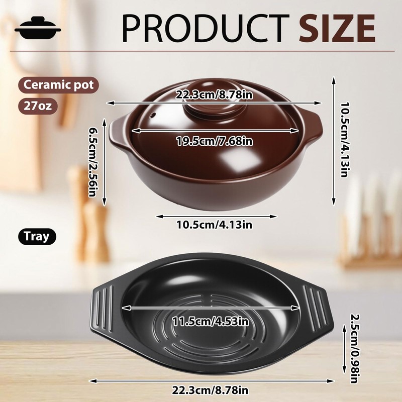 - Complete Cooking Package: each purchase not only includes a brown ceramic gas stove clay pot, but also a tray, doubling your cooking space and catering to all your culinary needs; The combined convenience of these items ensures you have a comprehensive cookware solution at your fingertips