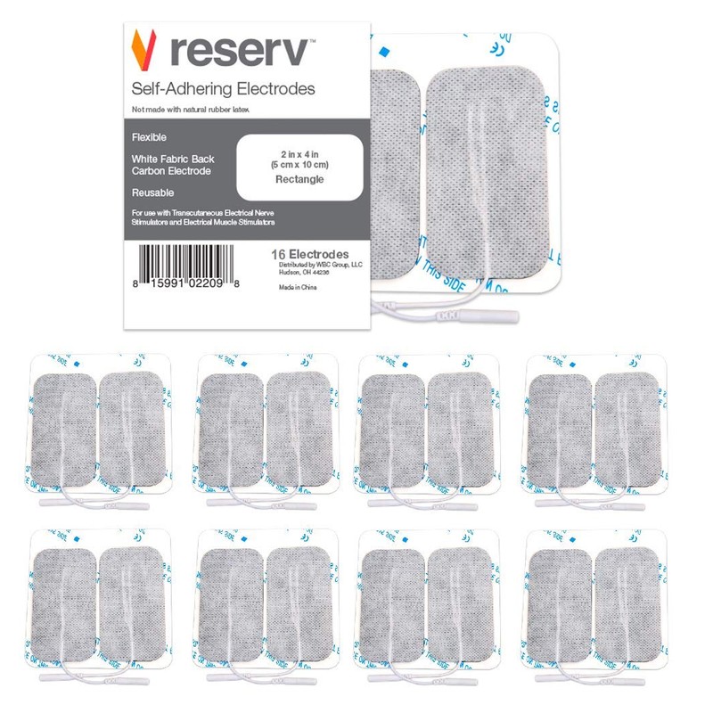 reserv 2" x 4" Rectangle Premium Re-Usable Self Adhesive Electrode Pads for TENS/EMS Unit, Fabric Backed Pads with Premium Gel (White Cloth and Latex Free)(16 Electrodes)