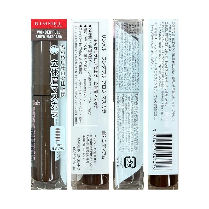 Colour, plump and tame your brows with Wonder'full Brow from Rimmel London. The easiest-to-use brow mascara tames and tints your arches in a single sweep of the tiny, tapered brush. Small enough for ultimate control, it bumps up your eyebrows with tiny fibres, giving you a full, plumped-up effect that lasts for up to 24 hours. This creamy formula is also infused with four luxurious caring oils, Argan, Maracuja, Marula & Camellia oil and it won't smudge or fade.