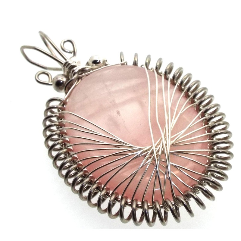 Rose Quartz Silver Plated Spirograph Wire Wrapped Pendant