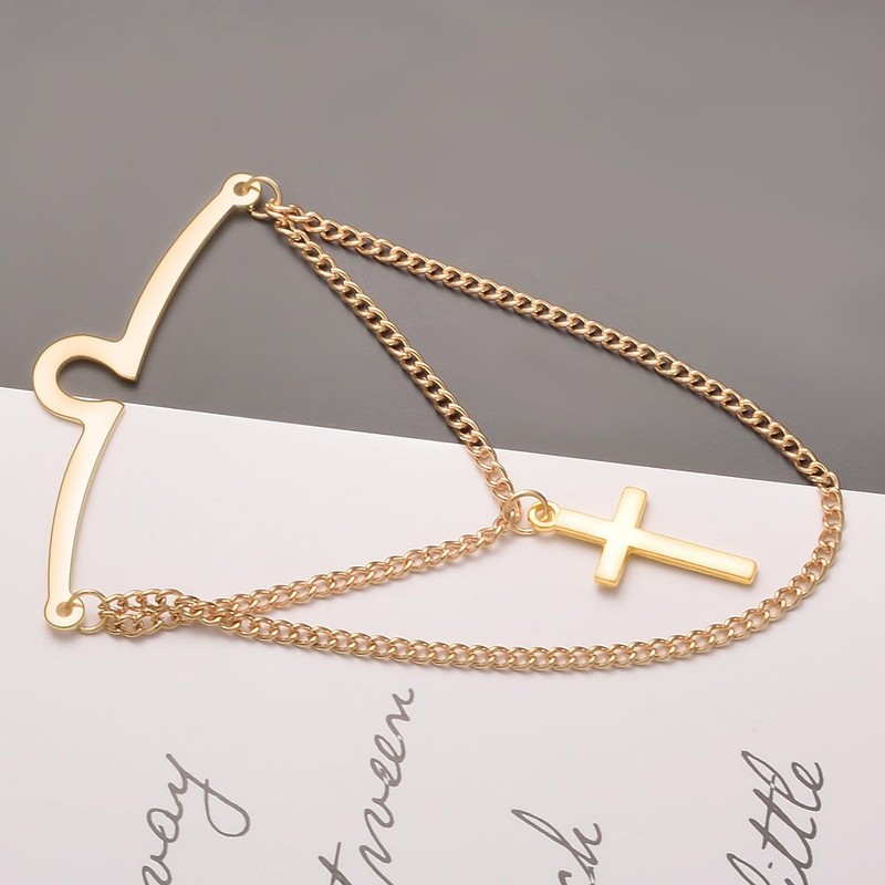 RunootPR Men's Gold Tie Chain 2.4" Simple Cross Tie Clip with Double Chain Business Jewelry Gift, 2.4", Brass, No Gemstone
