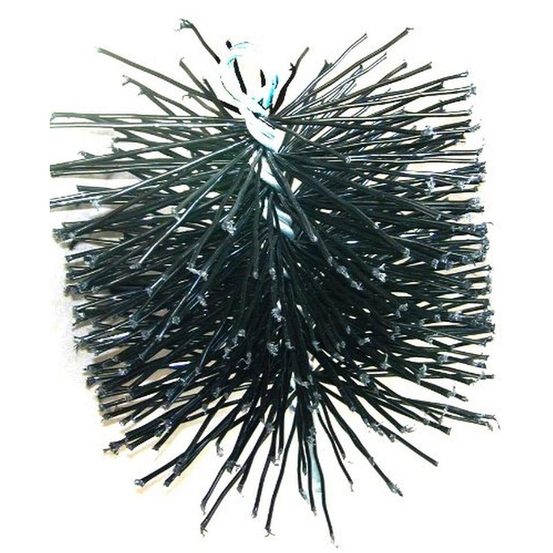 Designed for removing coal and oil soot. The polypropylene filament is twisted in a heavy duty, 7 gauge spindle, with a 1 4-Inch pipe thread, plated, machined nipple, and a preformed 3 4-Inch loop on the opposite end. The .075-Inch crimped, black, polypropylene filaments.