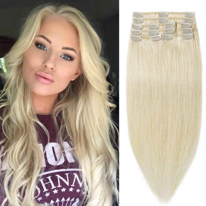 S-noilite Clip in Remy Human Hair Extensions Short Hair Extension Full Head 8 Pieces 18 Clips 100% Real Human Hair 8 Inch-65g (#60 Platinum Blonde) by S-noilite Store