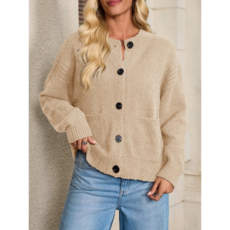 - Design: Button down, crew neck, fuzzy knit, drop shoulder, long sleeve, ribbed neckline, cuffs and hem, two pockets, open front, loose fit. Five-button front closure with contrasting black buttons adds a sophisticated touch to this open front cardigan for women trendy.