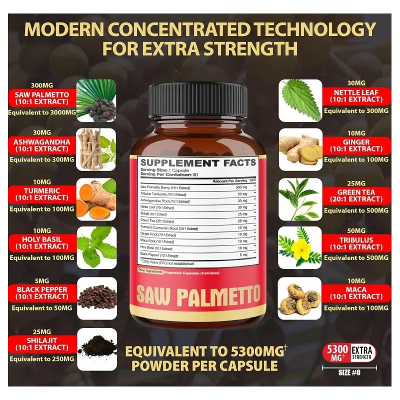 - Saw Palmetto: Puede apoyar la salud de la próstata y la función urinaria en hombres.
