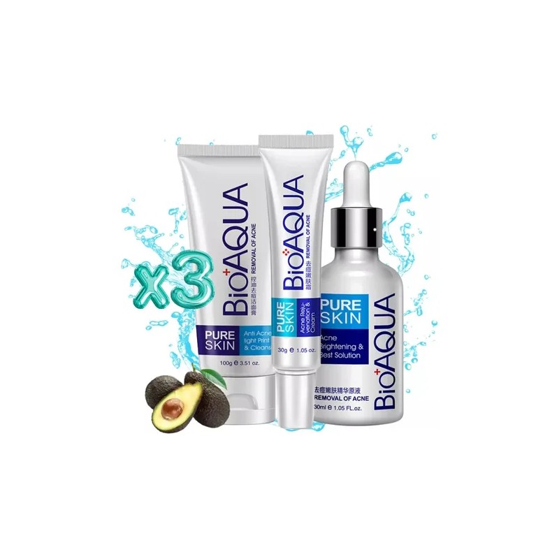 Set Bioaqua Pure Skin 3 Piezas | Tratamiento Intensivo para Acné y Grasa | Piel Limpia y Renovada